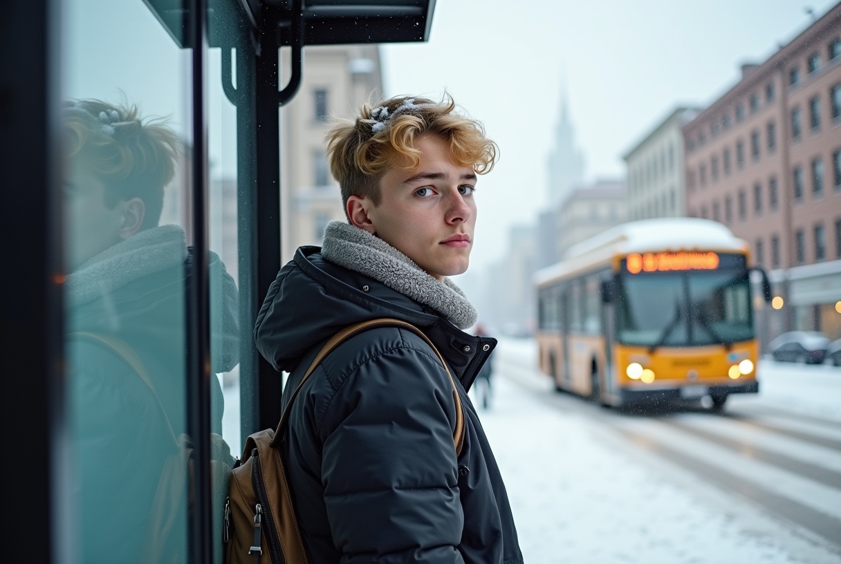 Макс на остановке ждет автобус